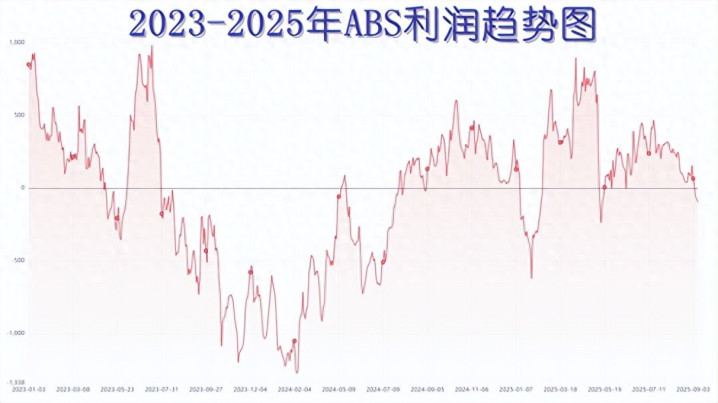 不过2025年年初到8月末这段时间,ABS又稍微给了点希望广盛网 ,理论平均利润约在 241元/吨,总算是从亏损黑洞里爬出来了一点。这主要还是多亏了原料价格比较低,苯乙烯、丙烯腈及丁二烯这几个主要原料价格都处于相对低位,生产成本也就跟着降下来了,给ABS的利润吃了颗小还丹。